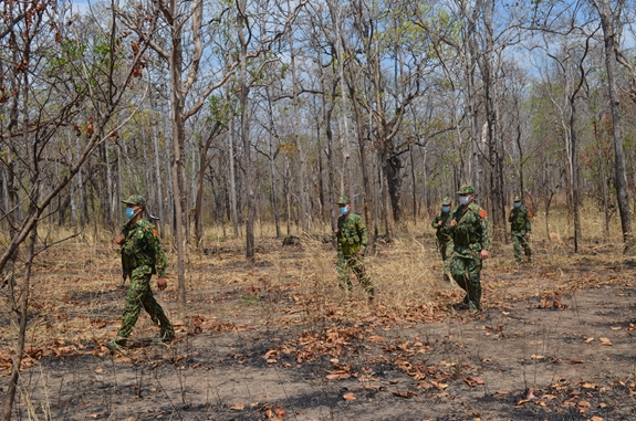 | Cán bộ, chiến sĩ Đồn Biên phòng Sê Rê Pốk tổ chức lực lượng tuần tra phòng, chống dịch trên biên giới