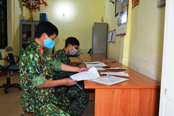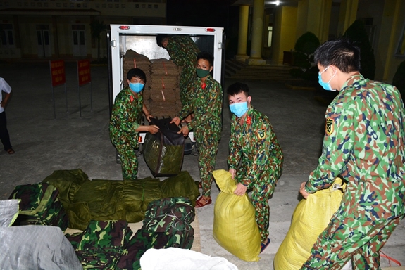 | Cán bộ Ban CHQS TP Điện Biên Phủ vận chuyển vật chất hậu cần vào phục vụ khu cách ly. |
