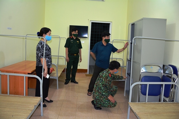 | Lãnh đạo các đơn vị kiểm tra khu cách ly trước khi đưa vào sử dụng. |