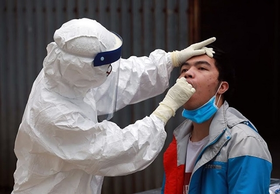 Lấy mẫu xét nghiệm cho người dân tại Hạ Lôi. Ảnh: nhandan.com.vn |