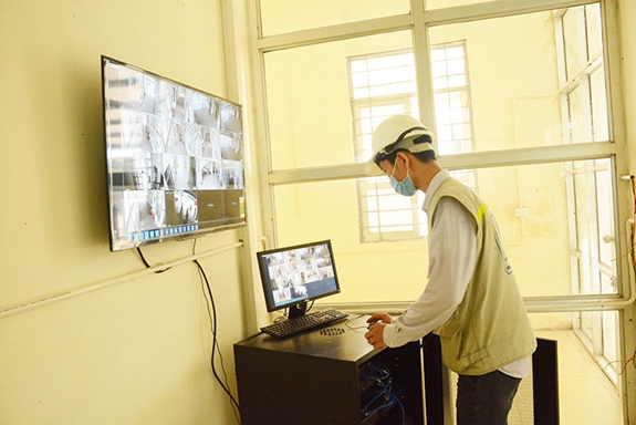 Nhân viên đang thử hệ thống camera khu vực nhà điều trị.