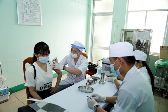 | Các bác sĩ tiêm vaccine phòng Covid-19 cho người dân. |