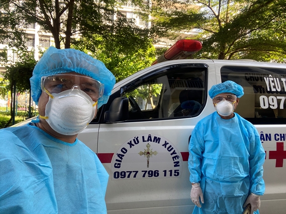 Hiện nay, xe cứu thương của giáo xứ Lâm Xuyên cùng hai tài xế Nguyễn Đình Quảng và Nguyễn Hoàng Hà được "biên chế" cho Trung tâm Kiểm soát bệnh tật tỉnh Bắc Giang quản lý, điều động thực hiện công tác phòng, chống dịch tại địa phương. Hai lái xe và phương tiện đang hoạt động liên tục ngày và đêm sát cánh cùng đội ngũ y, bác sĩ thực hiện nhiệm vụ. Qua câu chuyện với bà con chúng tôi được biết, khi thấy tình hình dịch ở Bắc Giang phức tạp, bà con giáo dân tại địa phương cũng muốn góp sức cùng chính quyền, nhân dân cả nước khống chế, đẩy lùi dịch bệnh. Ban đầu, đồng bào giáo dân ở đây có ý định quyên góp lương thực, thực phẩm gửi ra hỗ trợ nhân dân ngoài đó. Nhưng qua kênh truyền thông của Nhà nước, Hội đồng mục vụ giáo xứ Lâm Xuyên nhận thấy, vì bệnh nhân ở Bắc Giang rất cần xe cứu thương chuyên dụng phục vụ cho công tác phòng, chống dịch. Sau khi trao đổi với bà con giáo dân, hội đồng mục vụ đã quyết định sẽ điều xe cứu thương của giáo xứ ra Bắc Giang thực hiện nhiệm vụ. Sau đó, Hội đồng mục vụ giáo xứ Lâm Xuyên nhanh chóng cử đại diện liên hệ với cơ quan chức năng tỉnh Bắc Giang và bày tỏ nguyện vọng, tấm lòng của bà con giáo dân về việc hỗ trợ xe cứu thương để chung tay khống chế dịch và nhận được sự đồng tình cao. Đặc biệt, anh Nguyễn Đình Quảng, giáo dân giáo xứ Lâm Xuyên và anh Nguyễn Hoàng Hà, một người dân xã Trung Thành đã tình nguyện tham gia lái xe thực hiện công tác chống dịch tại Bắc Giang.