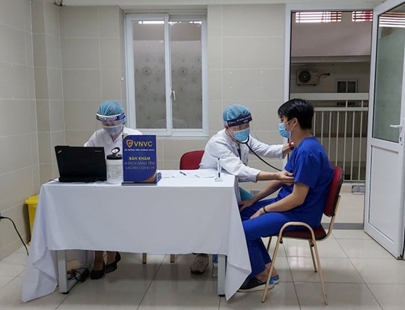 | Khám, đo huyết học cho các cán bộ y tế trước khi tiêm. |