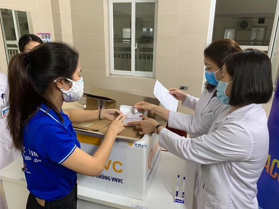 | Từ sáng 9-3, những hộp vaccine Covid-19 đã được vận chuyển từ kho lạnh VNVC tới điểm tiêm Bệnh viện Thanh Nhàn một cách an toàn. |