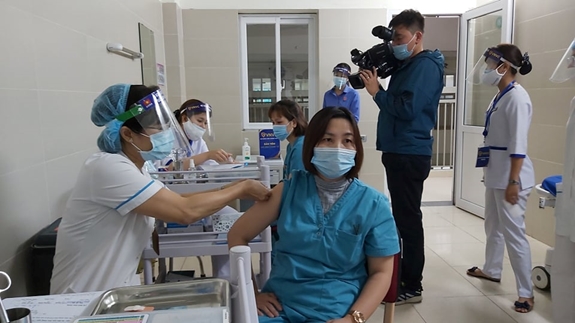 | Những cán bộ y tế đầu tiên được tiêm vaccine phòng Covid-19. |