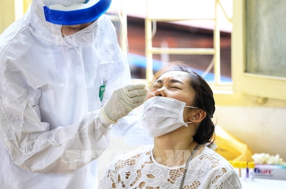 | Lấy mẫu xét nghiệm Covid-19 cho người dân Thủ đô. Ảnh minh họa: TTXVN |