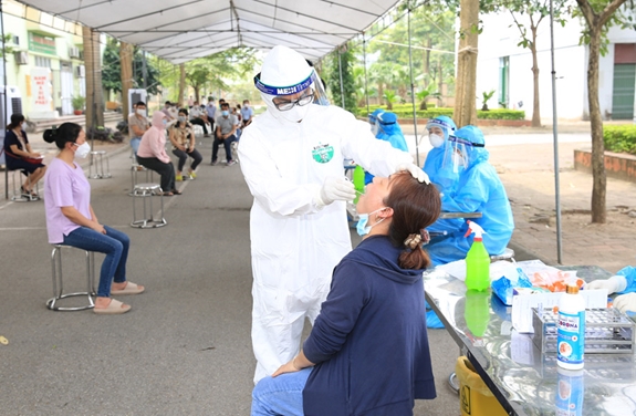 | Lấy mẫu xét nghiệm virus SARS-CoV-2 tại Hà Nội. Ảnh: hanoimoi.com.vn |