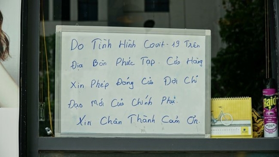 | Những tấm biển thông báo được trưng tại nhiều cửa hàng. |