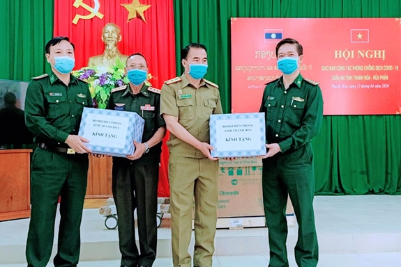 Bộ chỉ huy Bộ đội Biên phòng Thanh Hóa tặng trang thiết bị phòng, chống dịch cho Bộ đội Biên phòng tỉnh Hủa Phăn. |