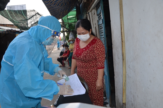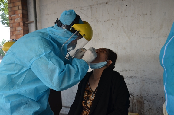 | Nhân viên y tế nhanh chóng lấy mẫu xét nghiệm. |