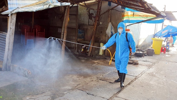 | Lực lượng chức năng tiến hành phun khử khuẩn. |