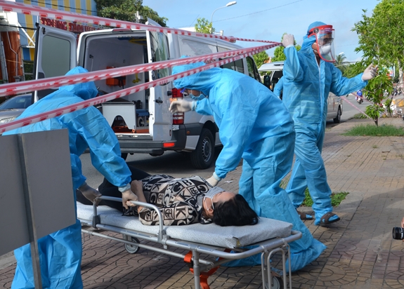 | Chuyển cấp cứu trường hợp bệnh nặng tại khu cách ly. |