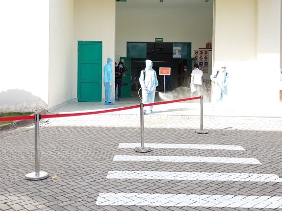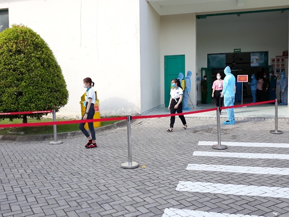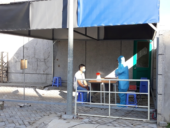 | Trường hợp nghi nhiễm được cách ly ngay tại cổng công ty, tổ An toàn Covid-19 Công ty điều tra dịch tể. |