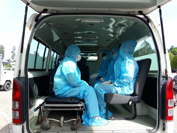 | Các trường hợp F1 được vận chuyển về khu cách ly tập trung của huyện Châu Thành A. |