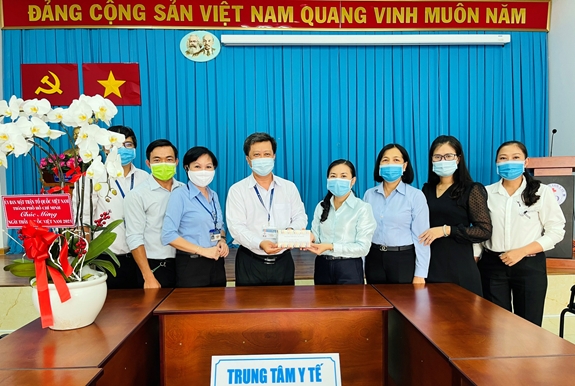 | Đại diện Ủy ban MTTQ Việt Nam TP Hồ Chí Minh, Ban vận động, tiếp nhận và phân phối Quỹ Phòng, chống dịch Covid-19 Thành phố thăm, tặng quà các đơn vị y tế. |