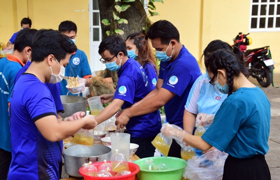 Ngày 14-6, nhằm hỗ trợ Bệnh viện Bệnh nhiệt đới TP Hồ Chí Minh đang bị phong tỏa do phát hiện nhân viên làm việc tại bệnh viện mắc Covid-19, Trung tâm Công tác xã hội thanh niên Thành phố đã phối hợp tổ chức nấu và trao tặng 500 phần ăn sáng, cùng 500 suất ăn trưa, chiều cho đội ngũ y tế, lực lượng làm công tác chống dịch tại đây.