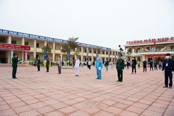 QĐND Online – Sáng 27-2, Ban chỉ đạo phòng, chống dịch bệnh Covid-19 huyện Cẩm Giàng tổ chức trao giấy hoàn thành cách ly cho 47 công dân thực hiện cách ly tại Trường Mầm non Cẩm Phúc (xã Cẩm Phúc, huyện Cẩm Giàng, tỉnh Hải Dương).