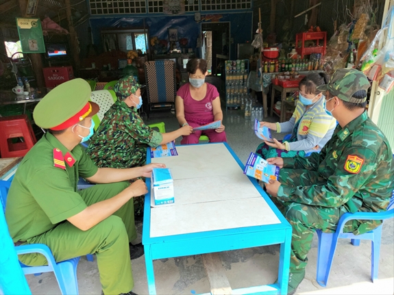 | Lực lượng chức năng tỉnh Đồng Tháp tuyên truyền, vận động nhân dân khu vực biên giới phòng, chống dịch bệnh. |