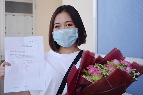 Du học sinh phấn khởi khi đón nhận chứng nhận hoàn thành nghĩa vụ cách ly.