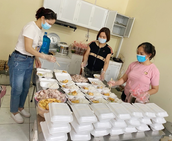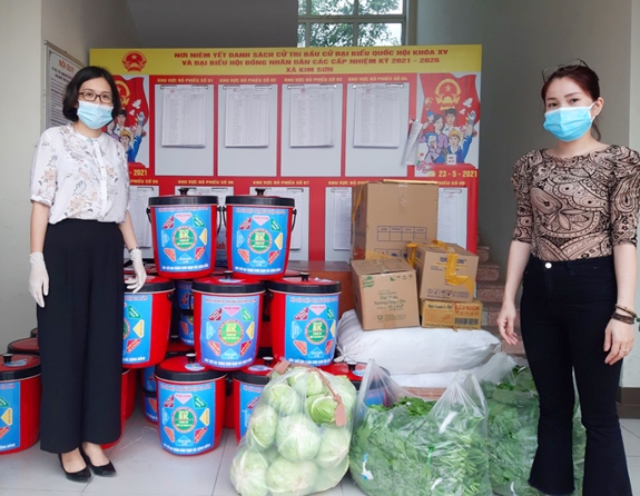 Xã Kim Sơn (huyện Gia Lâm, TP Hà Nội) hiện có 4 thôn phải cách ly y tế, gồm: Linh Quy Bắc, Linh Quy Đông, Cây Đề và Ngổ Ba, với 1.634 hộ, 5.538 nhân khẩu. Với mong muốn góp một phần công sức vào công tác phòng, chống dịch Covid-19, Hội LHPN xã Kim Sơn đã tổ chức nấu cơm dành tặng lực lượng trực chốt là công an, dân phòng, đoàn viên, thanh niên, tình nguyện viên... đang làm việc 24/24 giờ. Từ ngày 10-5 đến nay, mỗi ngày, Hội LHPN xã Kim Sơn nấu khoảng 180 suất cơm chia làm hai bữa trưa và tối.