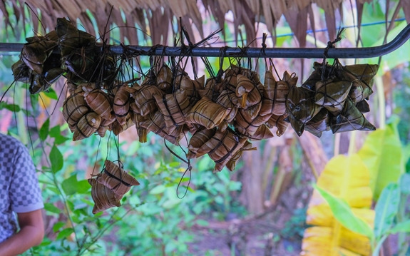 | Những chiếc bánh chủ yếu được làm từ bột nếp, bột gạo và gói bằng lá chuối, lá dừa. |