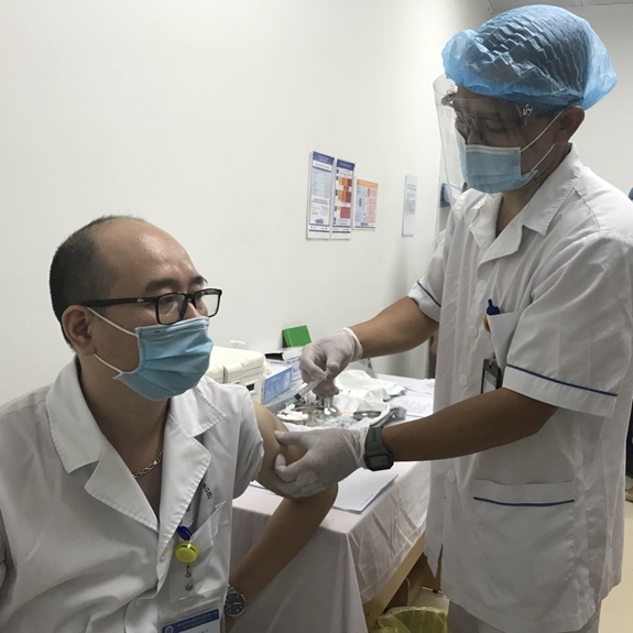 | Tiêm vaccine Covid-19 cho lực lượng tuyến đầu chống dịch. Ảnh: TTXVN |