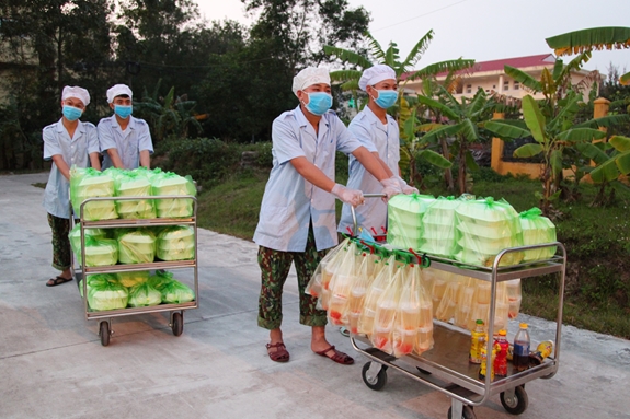 Quá trưa, chúng tôi rời Trường Quân sự tỉnh Quảng Ninh cũng là lúc các cán bộ, y, bác sĩ hoàn thành phần việc, nghỉ tay ăn trưa. Nhìn những gương mặt mướt mồ hôi bên những suất cơm đã nguội ngắt, chúng tôi càng thêm cảm phục y đức của những người lính nơi trận tuyến đầy vất vả, hiểm nguy này.