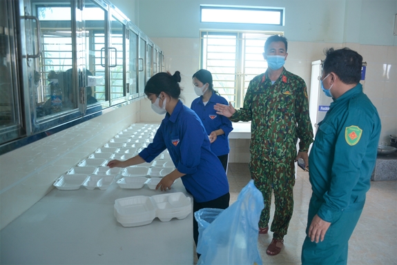 | Chuẩn bị chia khẩu phần ăn tại khu cách ly xã Diễn Ngọc, huyện Diễn Châu, tỉnh Nghệ An. |