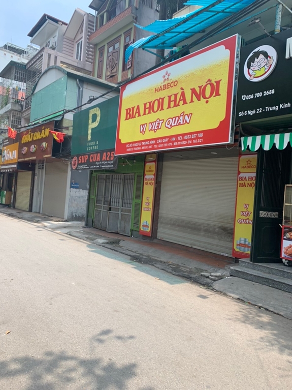 | Quán bia hơi trên phố Trung Kính chấp hành nghiêm quy định phòng, chống dịch Covid-19. |