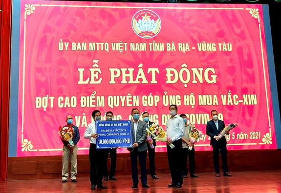Cùng ngày, đại diện lãnh đạo PV GAS cũng tham gia buổi lễ phát động đợt cao điểm ủng hộ Quỹ tại tỉnh Bà Rịa – Vũng Tàu với tư cách là doanh nghiệp đồng hành và ủng hộ Quỹ. Buổi lễ phát động ủng hộ Quỹ nằm trong các hoạt động của Bà Rịa - Vũng Tàu hưởng ứng lời kêu gọi "Toàn dân đoàn kết, ra sức phòng, chống dịch Covid-19" của Đoàn Chủ tịch UBMTTQVN, nhằm tập trung phòng, chống dịch và có thêm nguồn lực để tăng cường phòng, chữa bệnh; bảo đảm an sinh xã hội, an toàn đời sống và sức khỏe của nhân dân.