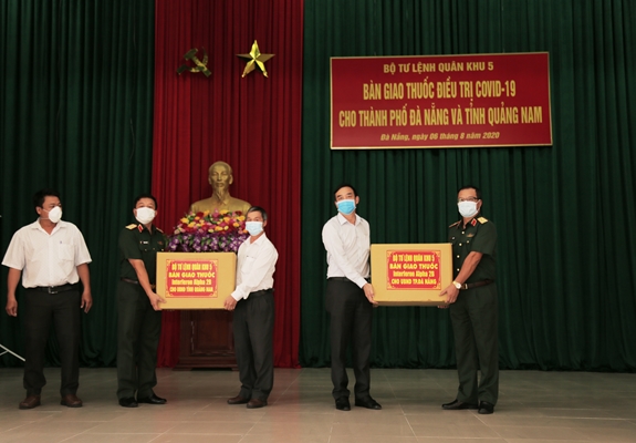 Thực hiện ý kiến chỉ đạo của thủ trưởng Bộ Quốc phòng, chiều 6-8, tại Đà Nẵng, Bộ tư lệnh Quân khu 5 tổ chức bàn giao các trang bị, vật tư y tế, thuốc hỗ trợ công tác điều trị bệnh Covid-19 cho UBND TP Đà Nẵng và UBND tỉnh Quảng Nam.