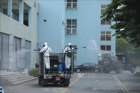 | Phun khử khuẩn tại Bệnh viện K cơ sở Tân Triều. Ảnh minh họa: TTXVN. |