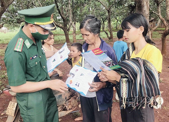Tại đây, bà con dân tộc thiểu số được lãnh đạo, chỉ huy các đồn biên phòng thông báo một số nội dung cơ bản liên quan đến tình hình trật tự, an ninh trên địa bàn biên giới, một số kết quả đạt được trong tham gia bảo vệ đường biên, cột mốc và tuyên truyền, hướng dẫn bà con các biện pháp phòng, chống dịch; không tham gia hoặc tiếp tay đưa những người từ bên kia biên giới trở về Việt Nam. Tập trung thực hiện tốt nhiệm vụ kép là giữ vững tình hình an ninh, trật tự trên địa bàn; phòng, chống hiệu quả dịch Covid-19 và bệnh bạch hầu. (Tin, ảnh: LÊ QUANG HỒI)