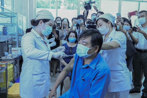 Những trường hợp ưu tiên đầu tiên được tiêm vaccine phòng Covid-19 tại thành phố Cần Thơ.
