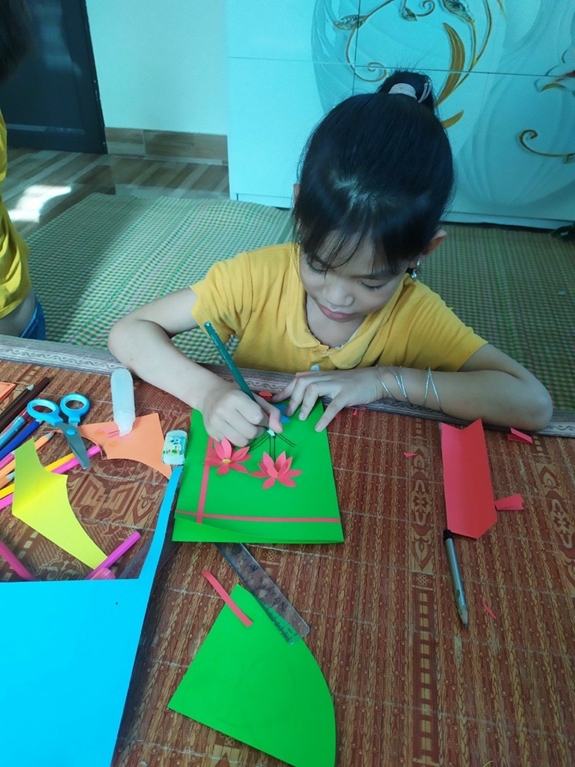 | Một số bạn nhỏ khác cũng tham gia làm thiệp cho bạn mình đang thực hiện cách ly. |