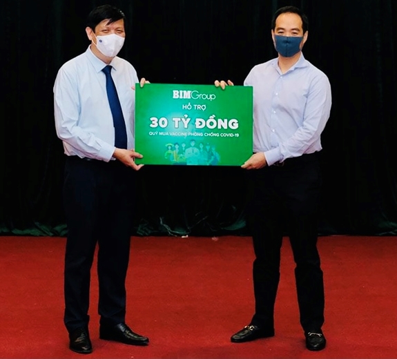 | Tại buổi lễ, 8 đơn vị, doanh nghiệp trao tặng 185 tỷ đồng cho Quỹ vaccine phòng Covid-19 Việt Nam, bao gồm: Tập đoàn Dầu khí Quốc gia Việt Nam tài trợ 50 tỷ đồng; Công ty Cổ phần thiết bị Điện Việt Nam tài trợ 30 tỷ đồng; Tập đoàn BIM Group tài trợ 30 tỷ đồng; Công ty Cổ phần VNG tài trợ 20 tỷ đồng; Ngân hàng Hàng hải tài trợ 20 tỷ đồng; Tập đoàn Điện lực Việt Nam (EVN) tài trợ 30 tỷ đồng; Tập đoàn KOSY tài trợ 3 tỷ; Công ty cổ phần Dược Hậu Giang tài trợ 2 tỷ đồng. |