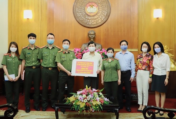 Phó chủ tịch UBTƯ MTTQ Việt Nam Nguyễn Hữu Dũng tiếp nhận ủng hộ từ Cục An ninh mạng và Phòng chống tội phạm sử dụng công nghệ cao.