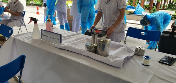 | CDC Bắc Giang chuẩn bị cho hoạt động tiêm vaccine. |