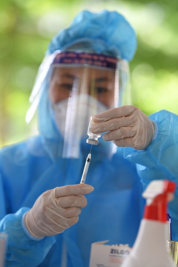 Sáng 28-5, Trung tâm Kiểm soát dịch bệnh (CDC) tỉnh Bắc Giang tiếp tục tổ chức tiêm vaccine ngừa Covid-19 AstraZeneca cho hơn 600 cán bộ, công nhân viên của Tập đoàn Khoa học kỹ thuật Hồng Hải (Foxconn) tại khu công nghiệp Đình Trám, huyện Việt Yên (Bắc Giang).