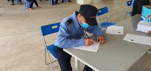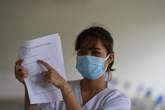 | Người lao động khai báo thông tin trước khi tiêm. |