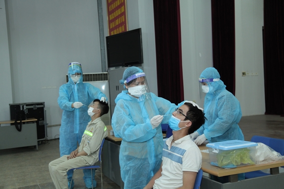 | Lấy mẫu xét nghiê%3ḅm SARS-CoV-2 tại Công ty Cổ phần Prime Tiền Phong, Tâ%3ḅp đoàn Prime (Vĩnh Phúc). Ảnh: KHÁNH LINH. |