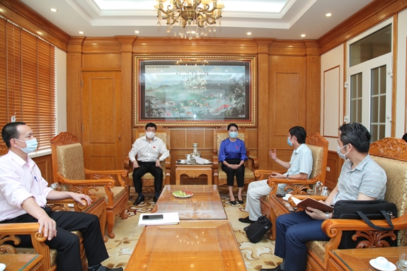 | Lãnh đạo Tỉnh ủy, UBND tỉnh Vĩnh Phúc trao đổi với phóng viên. Ảnh: KHÁNH LINH |