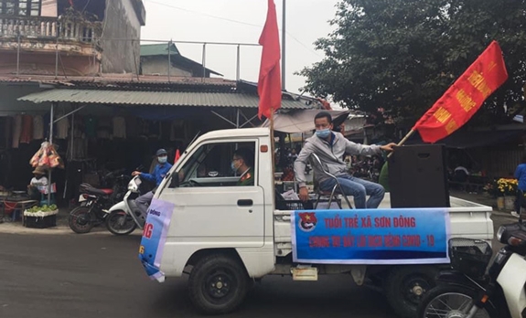 | Xã Sơn Đông (thị xã Sơn Tây) tuyên truyền lưu động phòng, chống Covid-19 tại khu dân cư, chợ dân sinh trên địa bàn. Ảnh: hanoimoi.com.vn |