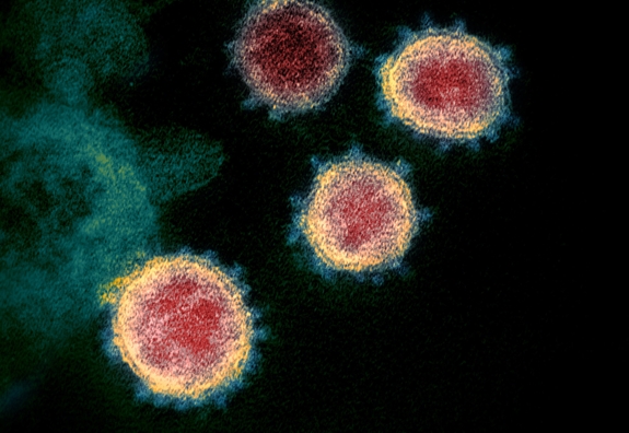 Virus SARS-CoV-2 dưới kính hiển vi. Ảnh: New York Times. |