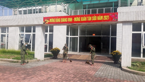 | Bộ đội Bộ CHQS Thừa Thiên Huế tổng dọn vệ sinh khu cách ly y tế tập trung phục vụ công dân trong dịp Tết Nguyên đán Tân Sửu. |