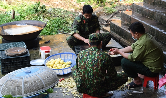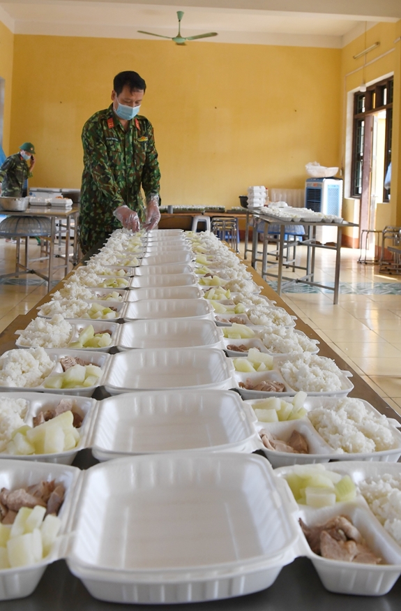 | Ngoài cơm dẻo, cán bộ chiến sĩ tại khu cách ly còn chuẩn bị cả canh ngọt phục vụ người dân cách ly. |