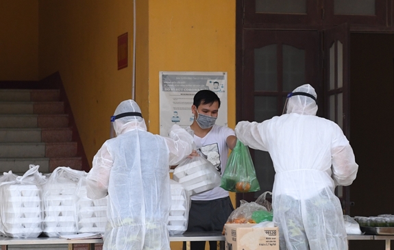 | Lương thực, thực phẩm được vận chuyển vào bên trong khu vực cách ly mỗi ngày. |