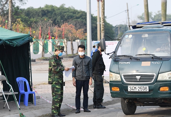 | Lực lượng chức năng kiểm soát chặt chẽ người và phương tiện ra vào thành phố Hải Dương. |