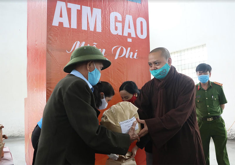 QĐND Online - Chiều 24-4, Báo Quân đội nhân dân phối hợp với Công an huyện Tam Đảo và Ban trị sự Phật giáo huyện Tam Đảo khai trương cây "ATM gạo" tại thị trấn Hợp Châu, huyện Tam Đảo.